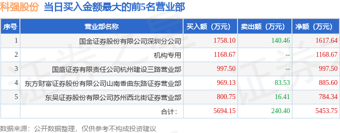 证券小知识:龙虎榜是交易所披露的竞价交易公开信息,现身龙虎榜的个股都是当日最为活跃的个股,是投资者日常重点关注的数据。交易所公布当日买入金额和卖出金额前五名的席位,其中一些席位代表特殊意义,如机构专用席位是指基金专用席位、券商自营专用席位、社保专用席位、券商理财专用席位、保险机构专用席位、保险机构租用席位、QFII专用席位等机构投资者买卖证券的专用通道和席位。深股通专用、沪股通专用为北向资金的交易席位。从龙虎榜数据可以发现和研究机构、游资和散户的资金动向。一些营业部席位经常上榜,市场知名度较高,投资者整理代表散户、游资、量化等不同资金的营业部席位。