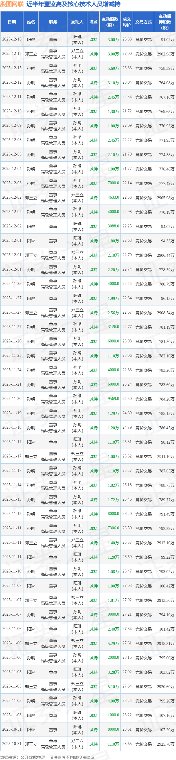 殷图网联近半年内的董监高及核心技术人员增减持详情如下: