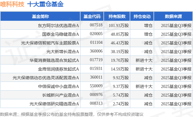 重仓唯科科技的前十大公募基金请见下表: