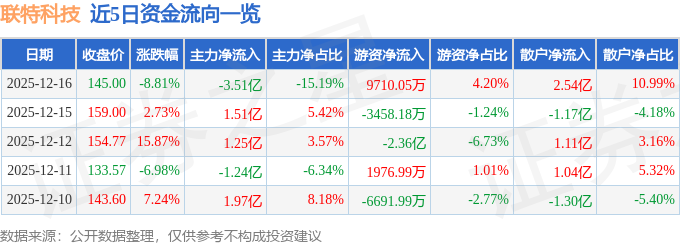 12月16日的资金流向数据方面,主力资金净流出3.51亿元,占总成交额15.19%,游资资金净流入9710.05万元,占总成交额4.2%,散户资金净流入2.54亿元,占总成交额10.99%。