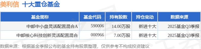 根据2025基金Q3季报公募基金重仓股数据,重仓该股的公募基金共2家,其中持有数量最多的公募基金为中邮基金的中邮中小盘灵活配置混合A。中邮中小盘灵活配置混合A目前规模为2.19亿元,最新净值2.539(12月16日),较上一交易日下跌1.28%,近一年上涨15.46%。该公募基金现任基金经理为曹思。曹思在任的基金产品包括:中邮核心科技创新灵活配置混合,管理时间为2015年2月11日至今,期间收益率为58.0%;中邮专精特新一年持有混合A,管理时间为2022年9月14日至今,期间收益率为-2.51%。