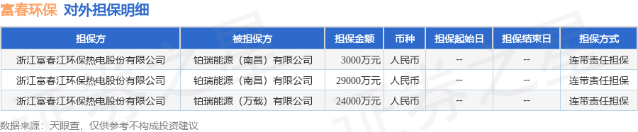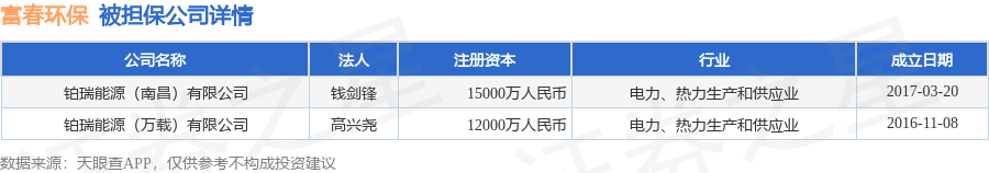 富春环保12月16日披露3笔对外担保,被担保公司2家。对外担保明细如下表: