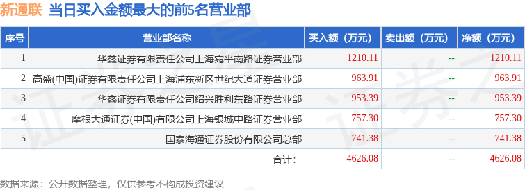 证券之星消息,沪深交易所2025年12月18日公布的交易公开信息显示,新通联(603022)因有价格涨跌幅限制的日收盘价格涨幅偏离值达到7%的前五只证券登上龙虎榜。此次是近5个交易日内第1次上榜。