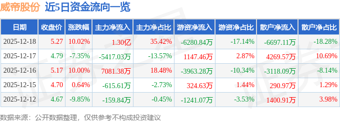 12月18日的资金流向数据方面,主力资金净流入1.3亿元,占总成交额35.42%,游资资金净流出6280.84万元,占总成交额17.14%,散户资金净流出6697.11万元,占总成交额18.28%。