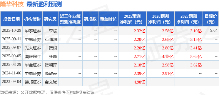 华金证券股份有限公司周涛,贺朝晖近期对隆华科技进行研究并发布了研究报告《25Q3业绩稳健增长,多业务稳步推进》,给予隆华科技买入评级。