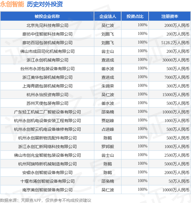 证券之星消息,根据天眼查APP显示,永创智能(603901.SH)新增一起对外投资事件,被投资公司为艾欧智能(深圳)有限公司,法定代表人陈相羽,投资占比为2.04%。该公司从事软件和信息技术服务业,注册资本为127.1275万人民币。目前,永创智能共存在对外投资47项,投资占比前20的项目见下表: