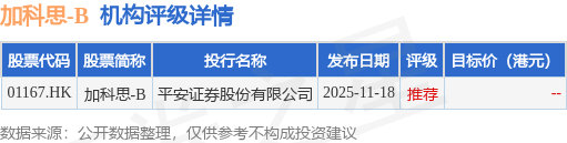 投行对该股的评级以推荐为主,近90天内共有1家投行给出推荐评级。平安证券股份有限公司最新一份研报给予加科思-B推荐评级。