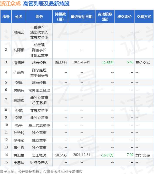 浙江众成近半年内的董监高及核心技术人员增减持详情如下: