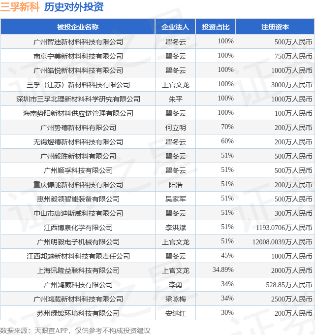 证券之星消息,根据天眼查APP显示,三孚新科(688359.SH)新增一起对外投资事件,被投资公司为安徽金玖新研创业投资合伙企业(有限合伙),法定代表人,投资占比为9%。该公司从事资本市场服务,注册资本为20000万人民币。目前,三孚新科共存在对外投资22项,投资占比前20的项目见下表: