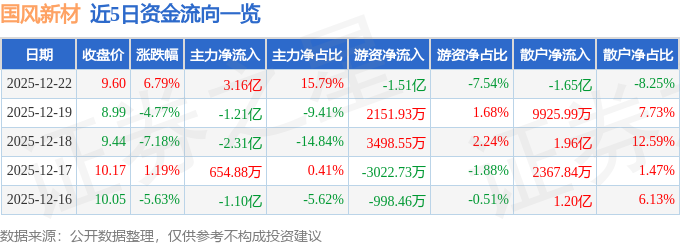 12月22日的资金流向数据方面,主力资金净流入3.16亿元,占总成交额15.79%,游资资金净流出1.51亿元,占总成交额7.54%,散户资金净流出1.65亿元,占总成交额8.25%。