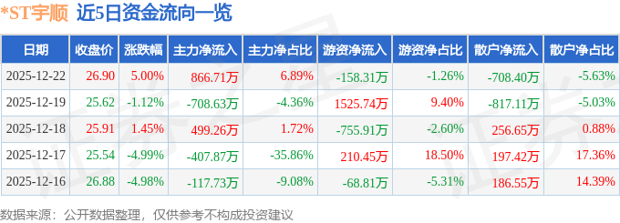 12月22日的资金流向数据方面,主力资金净流入866.71万元,占总成交额6.89%,游资资金净流出158.31万元,占总成交额1.26%,散户资金净流出708.4万元,占总成交额5.63%。