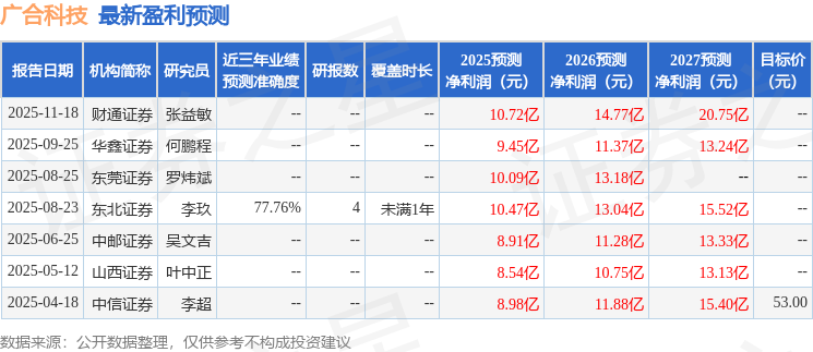以下是详细的盈利预测信息: