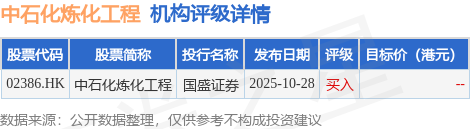 截至2025年12月23日收盘,中石化炼化工程(02386.HK)报收于7.54港元,上涨0.53%,成交量999.35万股,成交额7569.97万港元。投行对该股的评级以买入为主,近90天内共有1家投行给出买入评级。国盛证券最新一份研报给予中石化炼化工程买入评级。