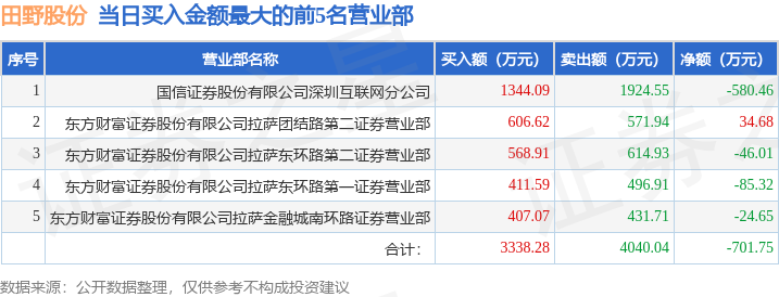证券之星消息,沪深交易所2025年12月24日公布的交易公开信息显示,田野股份(920023)因当日换手率达到20%的前5只股票登上龙虎榜。此次是近5个交易日内第3次上榜。