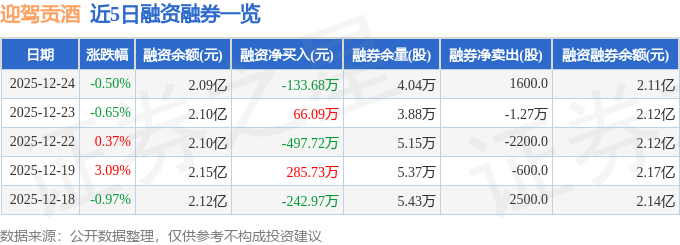 迎驾贡酒融资融券信息显示,融资方面,当日融资买入710.3万元,融资偿还843.98万元,融资净偿还133.68万元。融券方面,融券卖出2900.0股,融券偿还1300.0股,融券余量4.04万股,融券余额160.71万元。融资融券余额2.11亿元。