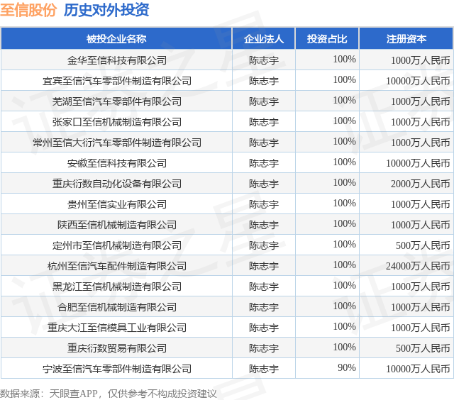 证券之星消息,根据天眼查APP显示,至信股份(603352.SH)新增一起对外投资事件,被投资公司为金华至信科技有限公司,法定代表人陈志宇,投资占比为100%。该公司从事计算机、通信和其他电子设备制造业,注册资本为1000万人民币。目前,至信股份共存在对外投资16项,详见下表: