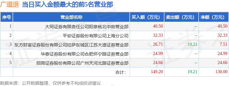 证券小知识:龙虎榜是交易所披露的竞价交易公开信息,现身龙虎榜的个股都是当日最为活跃的个股,是投资者日常重点关注的数据。交易所公布当日买入金额和卖出金额前五名的席位,其中一些席位代表特殊意义,如机构专用席位是指基金专用席位、券商自营专用席位、社保专用席位、券商理财专用席位、保险机构专用席位、保险机构租用席位、QFII专用席位等机构投资者买卖证券的专用通道和席位。深股通专用、沪股通专用为北向资金的交易席位。从龙虎榜数据可以发现和研究机构、游资和散户的资金动向。一些营业部席位经常上榜,市场知名度较高,投资者整理代表散户、游资、量化等不同资金的营业部席位。