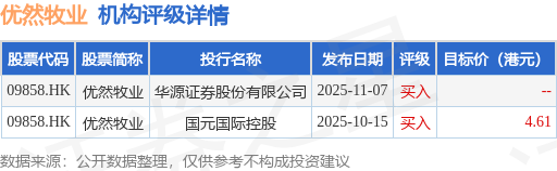 投行对该股的评级以买入为主,近90天内共有2家投行给出买入评级,近90天的目标均价为4.61港元。华源证券股份有限公司最新一份研报给予优然牧业买入评级。