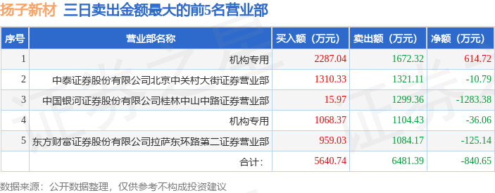 证券之星消息,沪深交易所2026年1月5日公布的交易公开信息显示,扬子新材(002652)因连续三个交易日内,跌幅偏离值累计达到20%的证券登上龙虎榜。此次是近5个交易日内第2次上榜。