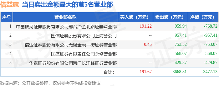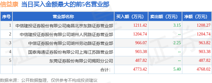 证券之星消息,沪深交易所2026年1月5日公布的交易公开信息显示,倍益康(920199)因当日收盘价涨幅达到20%的前5只股票登上龙虎榜。此次是近5个交易日内第1次上榜。