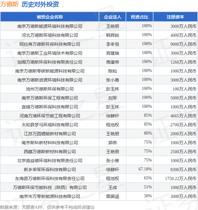证券之星消息,根据天眼查APP显示,万德斯(688178.SH)新增一起对外投资事件,被投资公司为河南盛泓环保工程有限公司,法定代表人储金冕,投资占比为-。该公司从事建筑装饰、装修和其他建筑业,注册资本为500万人民币。目前,万德斯共存在对外投资24项,投资占比前20的项目见下表: