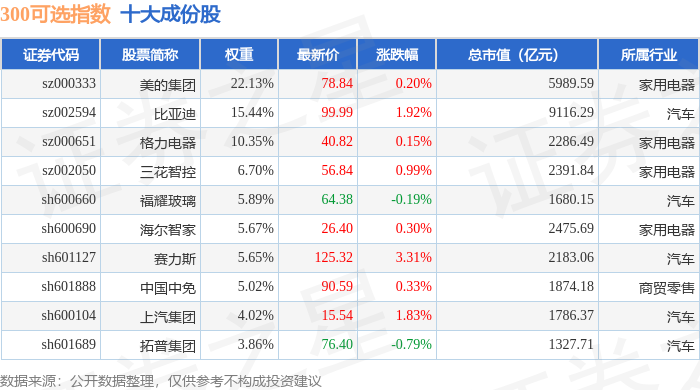 300可选(000911)指数十大成份股详情如下: