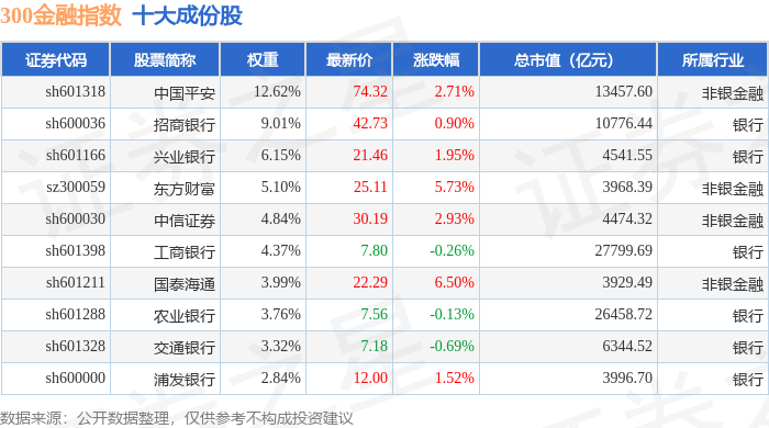 300金融(000914)指数十大成份股详情如下: