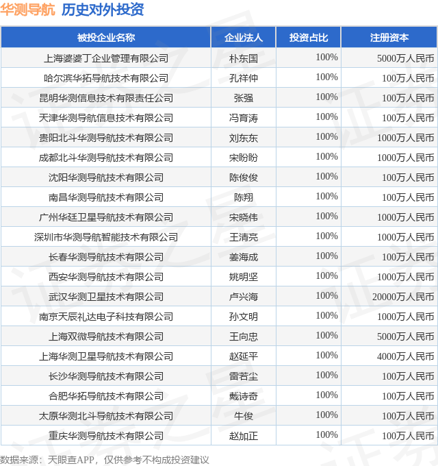 证券之星消息,根据天眼查APP显示,华测导航(300627.SZ)新增一起对外投资事件,被投资公司为上海婆婆丁企业管理有限公司,法定代表人朴东国,投资占比为100%。该公司从事商务服务业,注册资本为5000万人民币。目前,华测导航共存在对外投资37项,投资占比前20的项目见下表: