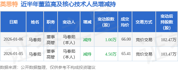 英思特近半年内的董监高及核心技术人员增减持详情如下: