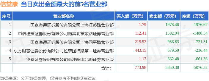证券之星消息,沪深交易所2026年1月8日公布的交易公开信息显示,倍益康(920199)因当日换手率达到20%的前5只股票登上龙虎榜。此次是近5个交易日内第4次上榜。