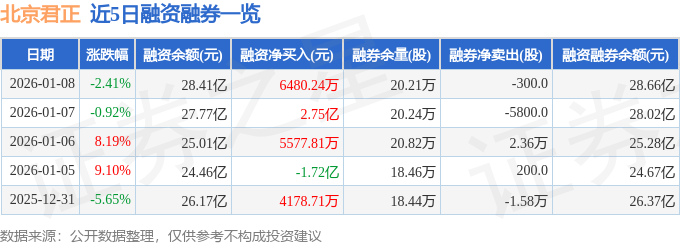 证券之星消息,截至2026年1月8日收盘,北京君正(300223)报收于121.02元,下跌2.41%,换手率7.97%,成交量33.52万手,成交额41.14亿元。