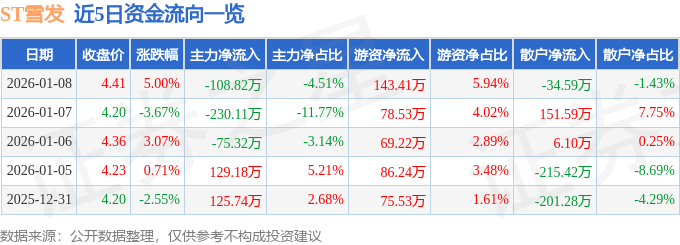 1月8日的资金流向数据方面,主力资金净流出108.82万元,占总成交额4.51%,游资资金净流入143.41万元,占总成交额5.94%,散户资金净流出34.59万元,占总成交额1.43%。