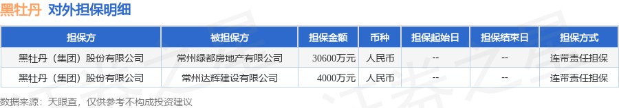 黑牡丹1月9日披露2笔对外担保,被担保公司2家。对外担保明细如下表: