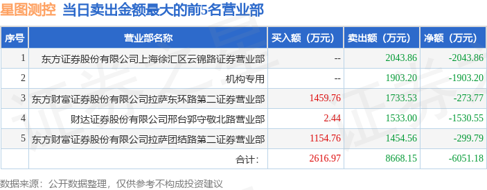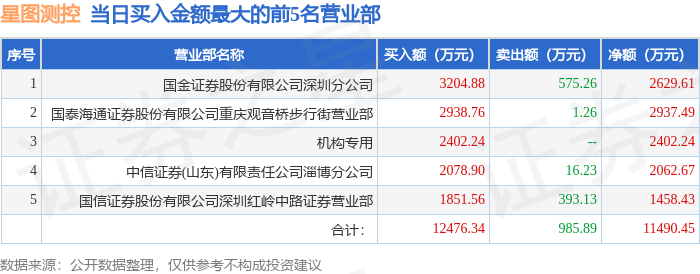 证券之星消息,沪深交易所2026年1月12日公布的交易公开信息显示,星图测控(920116)因当日收盘价涨幅达到20%的前5只股票登上龙虎榜。此次是近5个交易日内第2次上榜。
