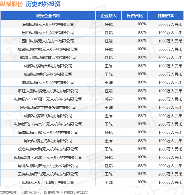 证券之星消息,根据天眼查APP显示,纵横股份(688070.SH)新增一起对外投资事件,被投资公司为共青城凯晟空天智能创业投资合伙企业(有限合伙),法定代表人凯晟南山私募股权投资基金管理(深圳)有限公司,投资占比为12.35%。该公司从事资本市场服务,注册资本为4050万人民币。目前,纵横股份共存在对外投资40项,投资占比前20的项目见下表: