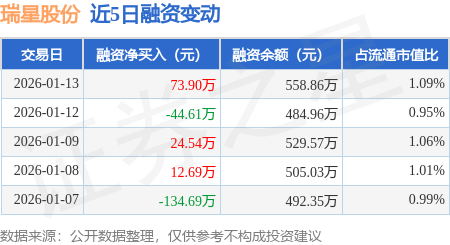 证券之星消息,1月13日,瑞星股份(920717)融资买入238.38万元,融资偿还164.48万元,融资净买入73.9万元,融资余额558.86万元,近20个交易日中有14个交易日出现融资净买入。