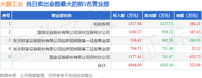 证券之星消息,沪深交易所2026年1月14日公布的交易公开信息显示,大鹏工业(920091)因当日换手率达到20%的前5只股票登上龙虎榜。此次是近5个交易日内第5次上榜。