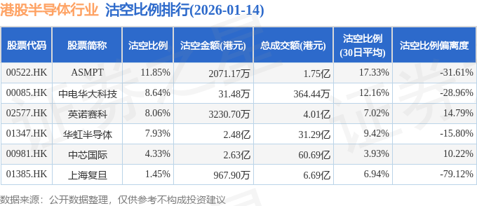 从沽空比例来看,ASMPT、中电华大科技、英诺赛科沽空比例位居行业前三,分别为11.85%、8.64%、8.06%。