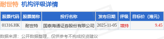 投行对该股的评级以增持为主,近90天内共有1家投行给出增持评级,近90天的目标均价为9.45港元。国泰海通证券股份有限公司最新一份研报给予耐世特增持评级,目标价9.45港元。