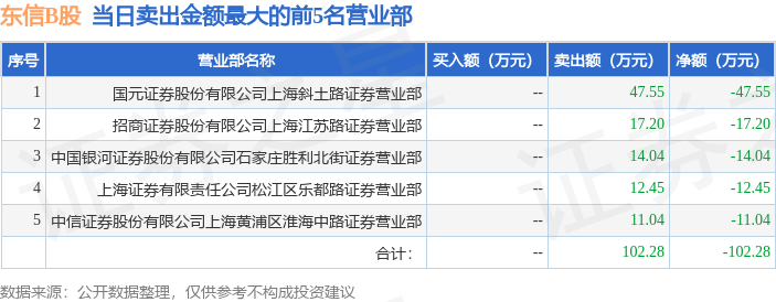 证券之星消息,沪深交易所2026年1月15日公布的交易公开信息显示,东信B股(900941)因有价格涨跌幅限制的日收盘价格跌幅偏离值达到7%的前五只证券登上龙虎榜。此次是近5个交易日内第2次上榜。