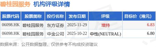 截至2026年1月15日收盘,碧桂园服务(06098.HK)报收于6.23港元,下跌0.95%,成交量702.96万股,成交额4404.01万港元。投行对该股的评级以增持为主,近90天内共有1家投行给出增持评级,近90天的目标均价为6.82港元。东方证券最新一份研报给予碧桂园服务增持评级,目标价6.83港元。
