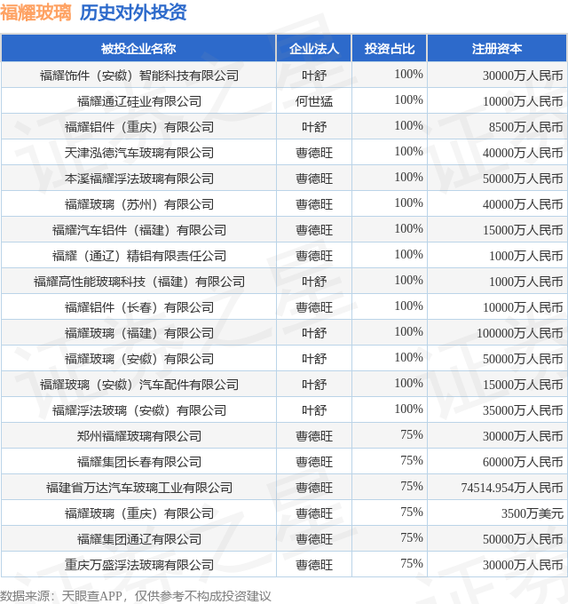 福耀玻璃(600660.SH)新增一起对外投资,被投资公司为福耀饰件(安徽)智能科技有限公司