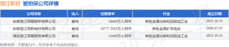 楚江新材1月16日披露3笔对外担保,被担保公司3家。对外担保明细如下表: