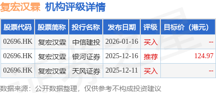 截至2026年1月19日收盘,复宏汉霖(02696.HK)报收于66.7港元,下跌2.27%,成交量42.34万股,成交额2843.34万港元。投行对该股的评级以买入为主,近90天内共有2家投行给出买入评级,近90天的目标均价为124.97港元。中信建投最新一份研报给予复宏汉霖买入评级。