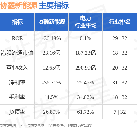 协鑫新能源港股市值23.16亿港元,在电力行业中排名第18。主要指标见下表: