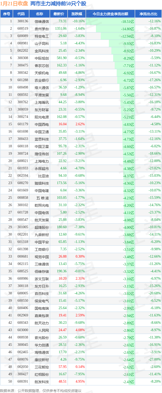 两市主力减持最多的前十只个股为: