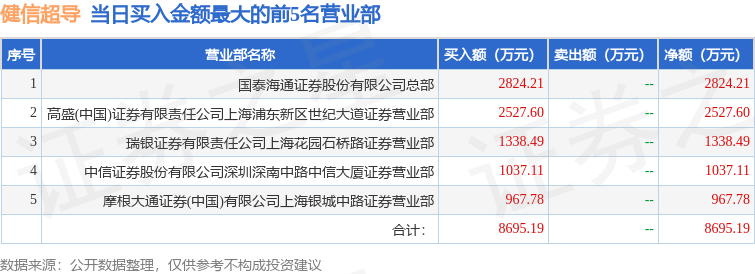 证券小知识:龙虎榜是交易所披露的竞价交易公开信息,现身龙虎榜的个股都是当日最为活跃的个股,是投资者日常重点关注的数据。交易所公布当日买入金额和卖出金额前五名的席位,其中一些席位代表特殊意义,如机构专用席位是指基金专用席位、券商自营专用席位、社保专用席位、券商理财专用席位、保险机构专用席位、保险机构租用席位、QFII专用席位等机构投资者买卖证券的专用通道和席位。深股通专用、沪股通专用为北向资金的交易席位。从龙虎榜数据可以发现和研究机构、游资和散户的资金动向。一些营业部席位经常上榜,市场知名度较高,投资者整理代表散户、游资、量化等不同资金的营业部席位。