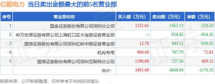 证券之星消息,沪深交易所2026年1月21日公布的交易公开信息显示,亿能电力(920046)因当日换手率达到20%的前5只股票登上龙虎榜。此次是近5个交易日内第5次上榜。