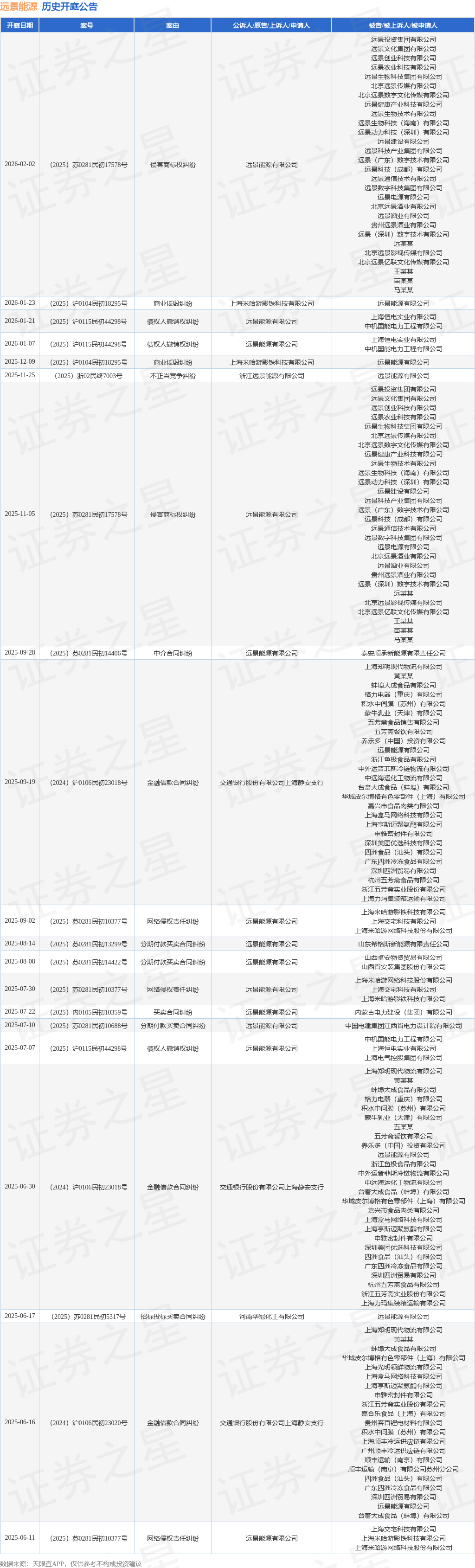 案号:(2025)沪0104民初18295号根据统计,近一年内以远景能源有限公司为当事人的历史开庭公告有33则,其中案由为“分期付款买卖合同纠纷”的公告以6则居首,其次为“侵害商标权纠纷”有3则,“债权人撤销权纠纷”有3则。历史开庭公告(前20条)如下: