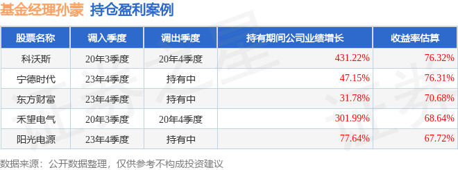 孙蒙管理的华夏中证500指数增强A基金在20年3季度买入科沃斯,在持有1个季度后在20年4季度卖出。持有期间的估算收益率为76.32%,持有期间科沃斯在2019年到2020年的年报归属净利润增幅达431.22%。